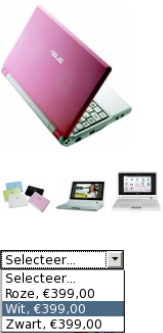 | Variations: drop down menu | The product variations are displayed in a compact way in a drop down menu. Your visitors can select the desired property in this menu. |