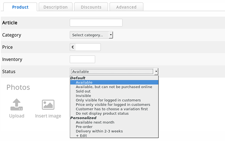 Our Business customers can now add personalized product statuses on top of the existing product statuses. This update gives you the freedom to set the product availability as desired.