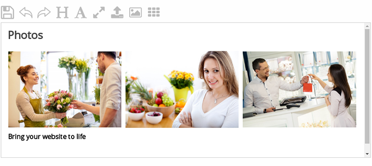 Tip: keep your pages consistent, avoid alternating fonts and text colors. Use photos to bring your website to life.